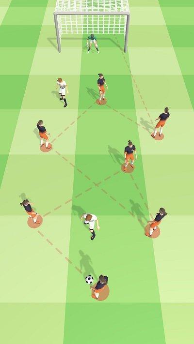 游戏中的所有角色都保持静止。有队友传球,旋转球员瞄准,旋转球员时,队友也会旋转,找到所有球员的正确角度,每位球员只打一球并进球,这是唯一的方法击败水平,给你带来非常精彩的游戏体验.